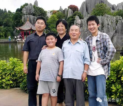 汪柏秀、陈昌世家庭是一个四世同堂的大家庭,儿、孙都很孝敬二老,一家其乐融融。照片为二儿子陈冰与两个孙子陪同二老在外旅游观光。