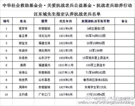 汪东城所捐助老兵名单