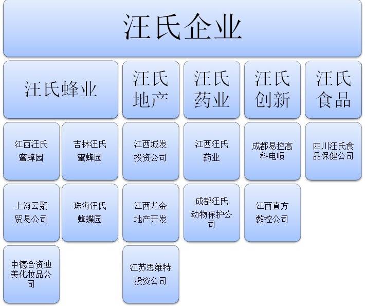汪氏创始人汪尤金老先生是四川资阳人,早年从事文教事业,1957年在“反右”运动中因名额不足而“中选”,继因拒不认罪而升级为“极右”,开除至农村劳动改造,但先生依然故我,每遇人间不平事,仍拔刀相助,常自比拉兹、牛牤,依旧我行我素。1966年归家伺母,无意中与蜜蜂结下不解之缘,从此自得其乐,与蜂感情甚笃,人物两忘,人称“汪蜂子”。1979年中国养蜂学会成立之际,尚被“通缉”的先生因一篇养蜂论文而被破例邀为大会特邀代表, 1988年,与夫人共创四川资阳蜂药厂,为解决“蜜蜂的癌症”——蜂螨的危害,用了三年时间潜心研究,在1995年研发成功“汪氏蟎扑”,取代了价格高出“汪氏蟎扑”50余倍的外国王牌药—阿比斯坦,冲破了德国和日本等西方国家对我国防治蜂螨特效原料药氟胺氰菊酯的垄断。汪氏螨扑在2003年2月获我国第一个由农业部批准的国家级新兽药原料药和新蜂药,也标志着我国高效、低残留蜂药的研发进入了世界级的水平。至今汪氏仍为世界仅有的两个能生产该蜂药原料的公司之一。汪老先生在养蜂界素以正直、稳健、实干且意识超前而闻名,在中国“蜂产品特许连锁专卖模式”、“特种蜂蜜”等概念的形成和实践均由汪氏领先倡导。汪尤金夫妇,共创企业,现均已年逾古稀,仍不改其志,正直善良早已固化为汪氏人的内部基因。 汪氏大事记 1982·汪氏在四川创办蜂具厂,收购蜂产品,做蜂具,开始创业; 1988-1995·创立四川资阳蜂药厂后,研制成功治蜂螨的神药阿比斯坦原药,打破欧美对中国蜂药的封锁,成为世界迄今能生产该药的二家企业之一; 1992·南下珠海,创立珠海汪氏蜜蜂园,第一个创立特种蜂蜜概念,首创蜂产品连锁经营模式,奠定了中国蜂产品以内销为主的格局; 1997·参加35届比利时国际养蜂大会,为中国及亚洲荣获唯一一枚大奖; 1998·挥师北上,创立江西汪氏蜜蜂园,建立大型系列蜂产品生产基地,并建立汪氏南昌总部; 2001·创立中德合资江西迪美化妆品有限公司,开发生产以蜂产品为主要原料的系列营养、护肤、美容化妆品,填补了中国市场空白。至此,一个集蜜蜂养殖、蜂产品加工、蜂药生产、制药、化妆品、房地产开发等多种产业化于一体的大型民营企业集团迅速成长起来; 2003·荣获第38届斯洛文尼亚国际养蜂大会蜂业博览会唯一新产品金奖,是亚洲唯一获奖企业;建立汪氏蜜蜂园吉林长白山绿色、有机蜂产品基地,被列入国家振兴东北老工业基地的扶持项目; 2005·汪氏被评为中国农业产业化国家重点龙头企业;国家工商总局批准汪氏产品为中国驰名商标;荣获江西省农业产业化十强龙头企业和食品工业十强企业称号; 2007·中国蜂产品消费者满意十佳产品和最具影响力十大品牌;荣获第40届国际养蜂大会产品创新奖,至此汪氏连续三届荣获世界养蜂大会(历时12年)中国唯一囊括全部奖牌的企业; 2008·签约中国举重队,成为2008奥运会合作伙伴 2009·营销总部迁建上海,成立上海云聚贸易发展有限公司;465g挤压蜜专利瓶型上市,倡导“喝蜂蜜,不沾手”的新风尚 2010·“八大名蜜”,“雪脂莲蜜”等20多个产品被上海世博会江西馆推荐为重点陈列产品。 2011·率先在全行业开展全产业链参观活动,引发消费者关注热潮;开通淘宝旗舰店,开通官方微博,开始电子商务平台; 2012·启动江苏昆山蜂尚园项目,打造蜜蜂文化产业园区。 汪氏荣誉 2007年11月15日,汪氏蜜蜂园与中国国家举重队在北京举办了战略合作伙伴签约仪式和新闻发布会,汪氏蜜蜂园正式成为北京2008年奥运会中国国家举重队战略合作伙伴。 2010年,作为江西省重点推荐产品,全程参加了上海世博会江西馆的展览展示,受到国家、省市领导和国内外参观者的高度认同。 敢为天下先,汪氏人的“第一” 第一个创出特种蜂蜜。 第一个开创蜂产品品牌特许连锁专卖经营模式 第一个在国际蜂业大会上为中国捧回金牌,是国内唯一在国际蜂业大会上连续三次获奖的企业。 第一个被国家列入振兴东北发展战略进行扶持的蜂业企业。 第一个打破国际上对中国实行蜂药封锁,研制成功阿比斯坦原药,成为世界上能生产该药的两家企业之一。 第一个获得新中国成立以来的养蜂业新兽药证书。 第一个荣获蜂产品行业的中国驰名商标。 第一个建立旨在弘扬蜜蜂文化的大型主题公园—江苏昆山蜂尚园 100余项殊荣,汪氏蜂光无限 1997年九月在比利时安特卫普第三十五届国际蜂产品博览会上荣获亚洲唯一的国际金奖 1997年十二月荣获第三届国际食品博览会金奖; 1999年十二月荣获“中国食品工业优秀企业”称号; 2001年二月通过英国UKAS皇冠认证; 2001年二月通过ISO9001国际质量体系认证; 2001年五月荣获“中国名优食品称号” ; 2002年十一月荣获“江西省知名商标”称号; 2003年八月在斯洛文尼亚荣获第三十八届养蜂博览会颁发的亚洲唯一一枚新产品金奖(获奖产品包括:蜂皇精软胶囊、蜂四宝膏、蜂胶软胶囊); 2003年八月荣获中国成都召开的第八届国际蜂疗大会金奖、银奖; 2004年通过中国国家保健食品GMP认证; 2005年11月“汪氏”口成为蜂产品行业首个获“中国驰名商标”称号的企业,同年荣获“中国名优食品”称号和“中国食品行业优秀企业”称号; 2005年汪氏被评为中国农业产业化国家重点龙头企业