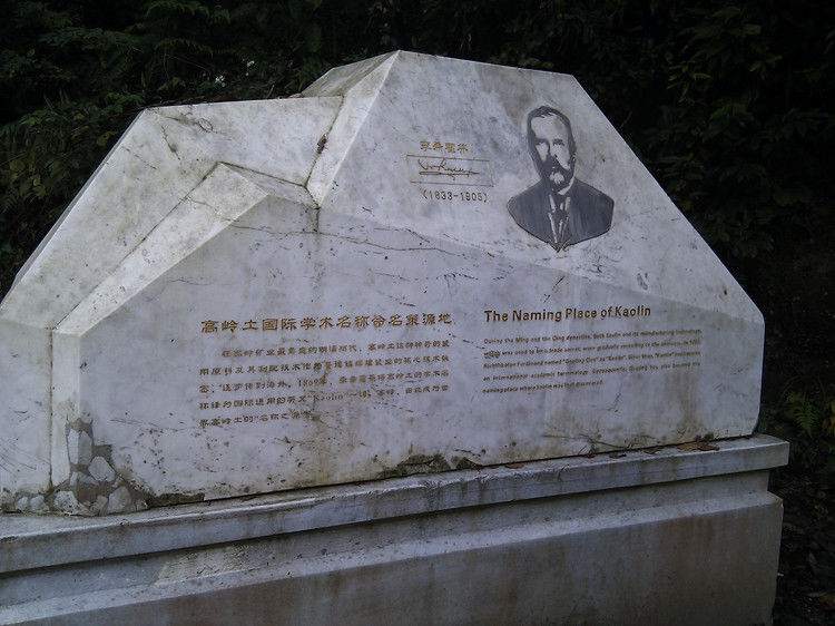清朝康熙五十年(1712),法国著名的神甫教士——昂特雷科尔惊奇的发现高岭土,用汉名宏绪写文章介绍高岭土。并将高岭土标本寄回法国去。最早向西欧披露了高岭土制瓷的秘密。 清朝同治四年(1869),德国著名的地质学家——李希霍芬来高岭考察,回国后在他的名著《中国》一书的第三卷中,对高岭土作了详细的介绍,并用高岭字音创造了制瓷原料的英语单词——kaolin,成为世界通用的制瓷原料专门用名称,随即高岭土蜚声世界,高岭成为世界一方名山,成为追溯陶瓷历史和人类文明起源的圣地。 如今高岭土不断被发现,矿脉延伸邻县,无论从其数量还是质量上讲,都是任何产瓷土区所莫及的,我国三联书社于解放后出版的《景德镇陶瓷史稿》作了统计,可再供应1300年以上。 蜚声世界的高岭土故乡——高岭村,距瓷都四十五公里;距浮梁县城四十公里。这颗溪水环绕、绿树掩映的珍珠,至今仍保留着明代万历年间至清代雍正时期有关开采高岭土的石刻,存有不少明、清矿坑、矿井遗迹。还有一座座雪白的尾沙堆山,能欣赏到世界独一无二的“青山浮白雪”奇观。 高岭旅游景点多不胜数。《浮梁县志》记载:高岭在县东七十里仁寿都,地连婺源石城山。险峻特甚,黄巢之乱,乡民保之,有黄梅寨、走马台、双井泉。元末,于光将李昌立寨守此。通志谓之高岭涧。这里林深茂密,玉涧泉鸣,山崇岭峻,曲道通幽,有观音泉、接夫亭、来福泉、状元帽、水口亭、庙龙口瀑布、冷风洞、龙井、回音壁、龙潭、千年古樟群、高岭瀑布、弥陀柱和报恩桥友谊潭、官财潭、杨桃园、黄吊鬼洞、仙人坡、麻石凹、金鸡石等景点,都是旅游的乐园。身临其境,使人心旷神怡。一切烦恼都会置身度外,高岭的自然风光和人文景观确实是太美了!一个个秀丽的景观都有其特色,游客熔入其中真正体会到世上何为奇?但能知所止,妙化自无边。欲写奇景难着笔,不游高岭是虚生。 世界名山神奇的高岭,悠久的历史,瓷器的精神,选出一些闪光的珍珠,献给各位朋友,以江心补漏收藏之用。 对高岭感兴趣的朋友可上网看童家荣写的《世界名山高岭旅游大全》一书 http://blog.sina.com.cn/s/articlelist_1824706445_0_1.html
