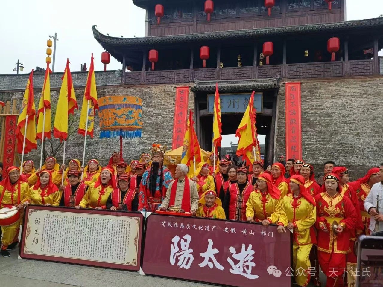 3月29日至30日,隆重纪念古徽州第一伟人、徽州太阳菩萨、唐越国公汪华诞辰1439周年暨第七届中国黄山汪华文化节活动,在全国各地徽学专家、学者和汪氏俊杰贤达大力支持下,在歙县政府、徽州区政府、屯溪区政府及文旅、城管、交通等部门以及国家五A级唐模景区、国家四A级休宁县万安古城岩(汪王故宫)景区大力帮助下,国家级非遗、省级非遗和市级非遗《徽州傩舞》、《游太阳》、《瞻淇鱼灯》展演队倾情奉献下获得圆满成功。