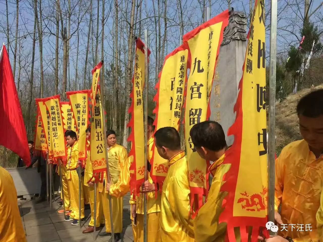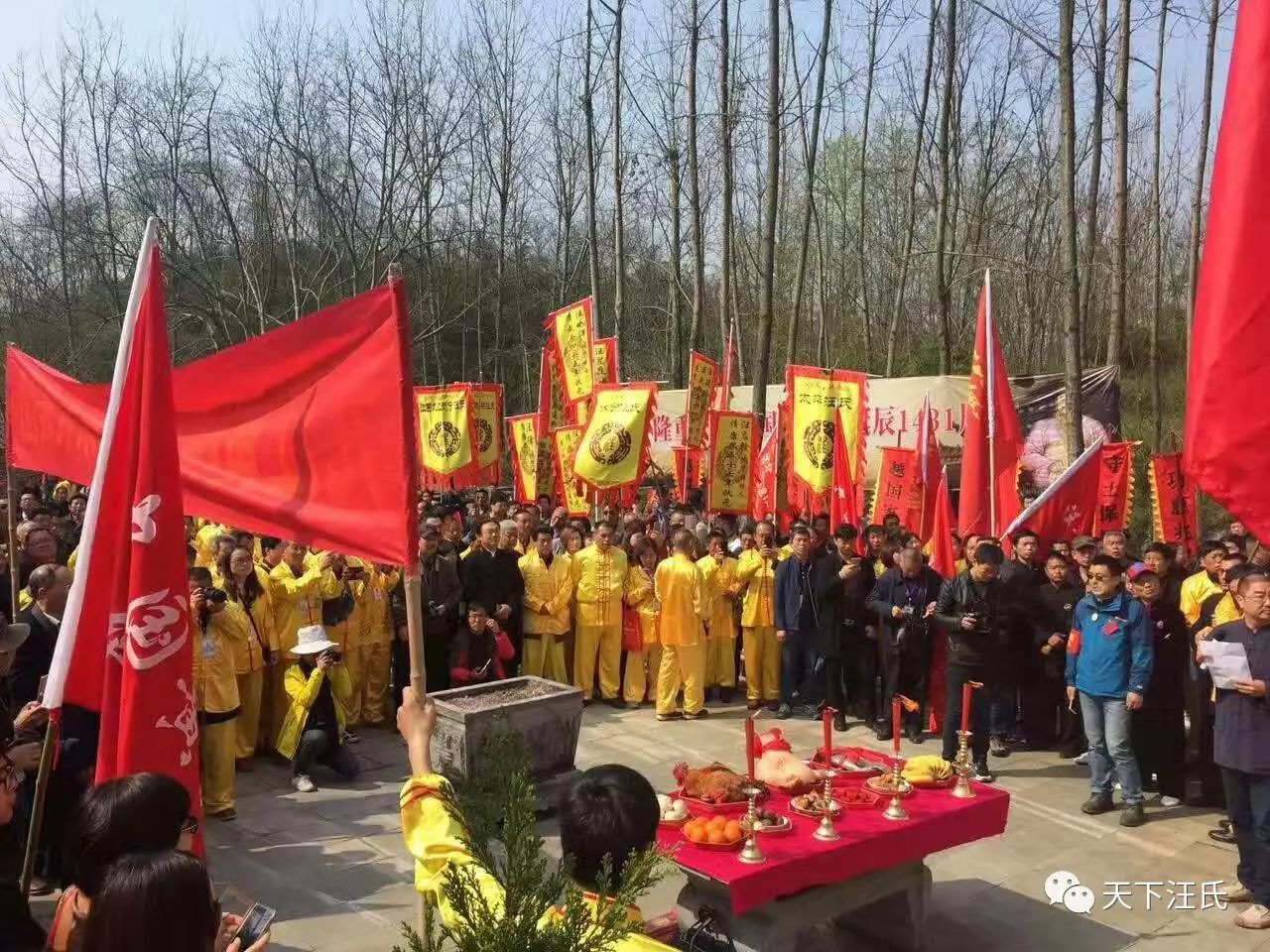 全体代表向汪华墓行礼,行三鞠躬和三跪拜九叩首之大礼。大家还依序敬香,墓前拜谒。
