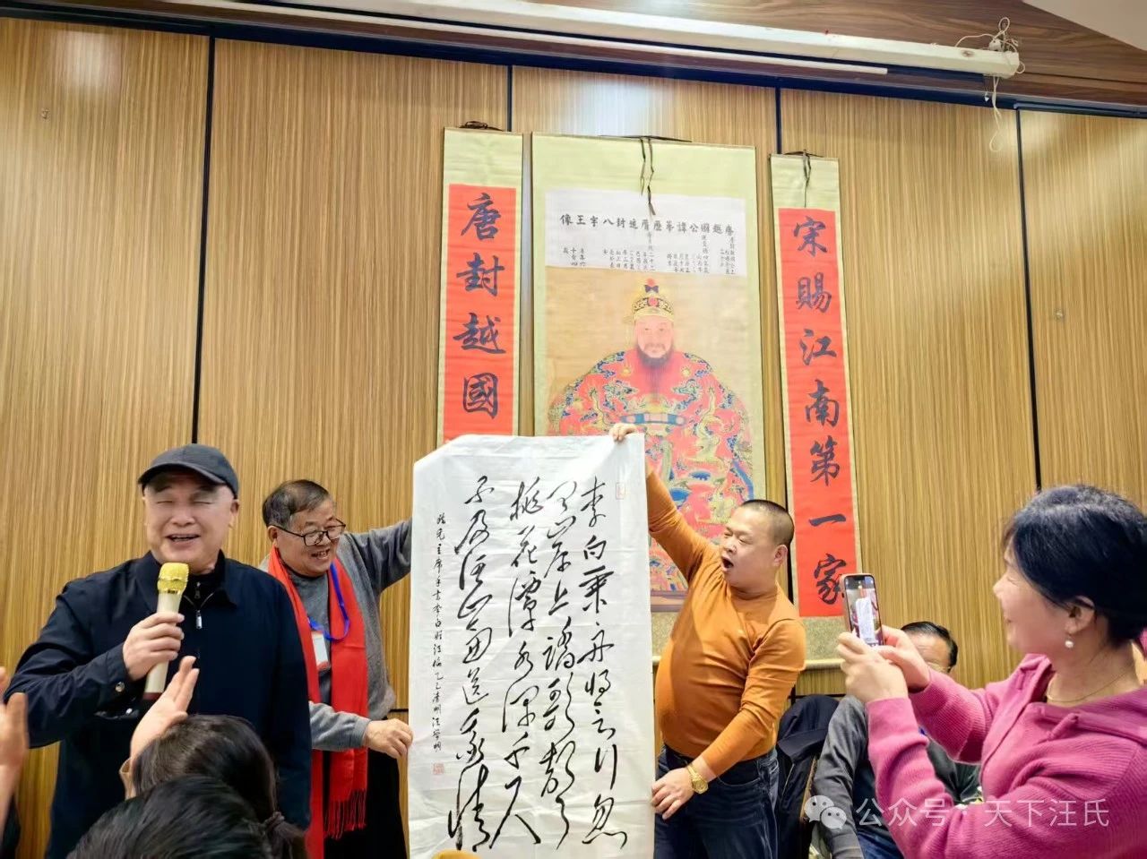 下午6时,在屯溪百鸟亭徽宴楼二楼餐厅,参加活动的代表们又高兴地在这里联欢。著名毛体书法家、黄山市汪华书画院名誉院长、原合肥市委、市政府副秘书长汪学明赶到现场,为研究会赠“汪公大帝”、毛泽东诗词“雪”等书法作品,为这次纪念汪华和第七届汪华文化节活动画上句号。